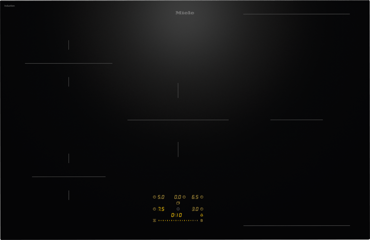 KM 8484 FLИндукционен готварски плот за вграждане със сензорен контрол 800 mm | индивидуални зони за готвене и зона за готвене PowerFlex XL